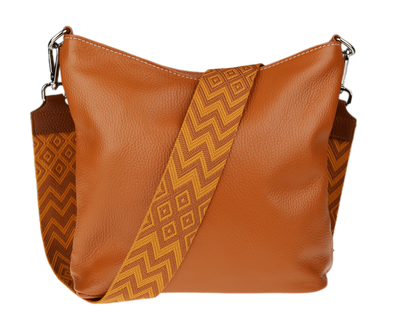 Klasická praktická kabelka s jednoduchým designem a stylovým přídavným popruhem. Nositelná přes rameno nebo crossbody. Kabelka je uzavíratelná na zip a je vyrobena z pravé poctivé kůže. Uvnitř kabelky najdeme přepážku uprostřed, která zároveň slouží jako kapsa na zip, a na bočních stěnách pak kapsu na zip a na druhé straně další malou kapsu.