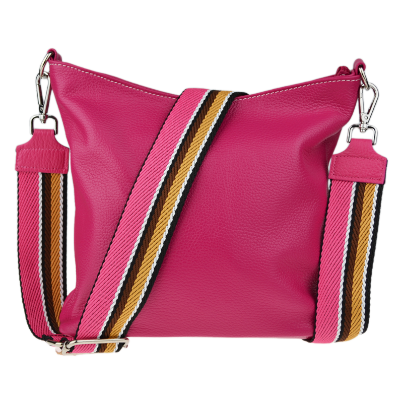 Klasická praktická kabelka s jednoduchým designem a stylovým přídavným popruhem. Nositelná přes rameno nebo crossbody. Kabelka je uzavíratelná na zip a je vyrobena z pravé poctivé kůže. Uvnitř kabelky najdeme přepážku uprostřed, která zároveň slouží jako kapsa na zip, a na bočních stěnách pak kapsu na zip a na druhé straně další malou kapsu.