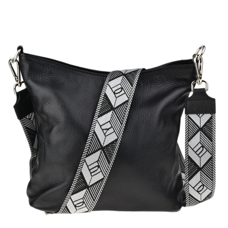 Klasická praktická kabelka s jednoduchým designem a stylovým přídavným popruhem. Nositelná přes rameno nebo crossbody. Kabelka je uzavíratelná na zip a je vyrobena z pravé poctivé kůže. Uvnitř kabelky najdeme přepážku uprostřed, která zároveň slouží jako kapsa na zip, a na bočních stěnách pak kapsu na zip a na druhé straně další malou kapsu.