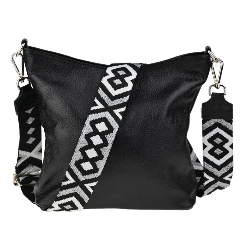 Klasická praktická kabelka s jednoduchým designem a stylovým přídavným popruhem. Nositelná přes rameno nebo crossbody. Kabelka je uzavíratelná na zip a je vyrobena z pravé poctivé kůže. Uvnitř kabelky najdeme přepážku uprostřed, která zároveň slouží jako kapsa na zip, a na bočních stěnách pak kapsu na zip a na druhé straně další malou kapsu.