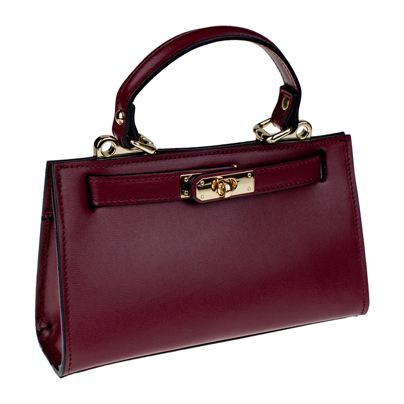Malá kabelka z pevné kůže v bordó barvě. Kabelku lze nosit v ruce nebo přes rameno. Max. délka přídavného pásku je 115 cm. Kabelka je vybavena důmyslným a elegantním zapínáním. Uvnitř kabelky nalezneme kapsu na mobil či klíče.