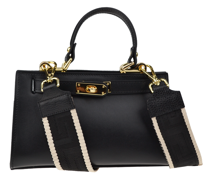 Malá kabelka z pevné kůže v černé barvě. Kabelku lze nosit v ruce nebo přes rameno. Max. délka přídavného pásku je 115 cm. Kabelka je vybavena důmyslným  a elegantním zapínáním. Uvnitř kabelky nalezneme kapsu na mobil či klíče.