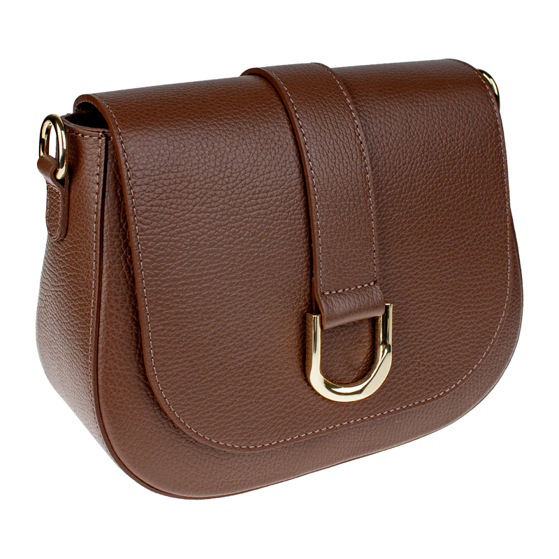 Hnědá kabelka nositelná přes rameno či cross-body (křížem). Tato kožená kabelka je uzavíratelná na patentku a uvnitř nalezneme přihrádku na zip. Kabelka má nastavitelný popruh s maximální délkou cca 118 cm.