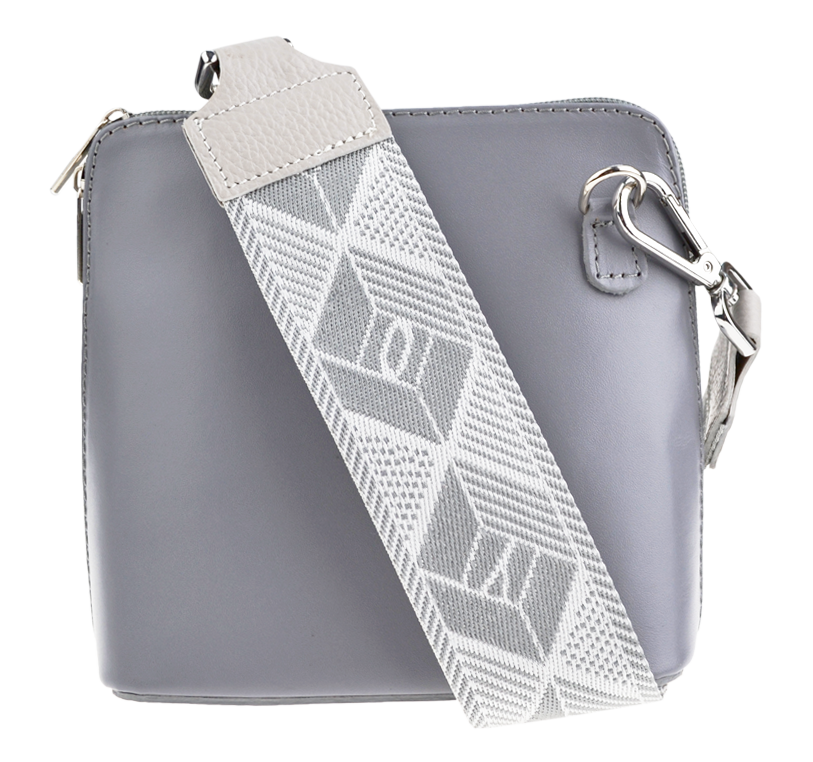 Elegantní, ale zároveň velmi praktická šedá kabelka malých rozměrů vyrobena z pravé kůže. Díky tenkému pásku je nositelná přes rameno. Zip, kterým se uzavírá, vede po hraně kabelky až po spodní okraj na obou stranách, a proto je její vnitřek dobře dostupný. Na vnější zadní straně najdete na kabelce malou kapsu na zip a uvnitř dělí celý prostor na dvě části příčka, která současně slouží jako kapsa na zip. Hloubka jejího dna je 8 cm. Délka přídavného popruhu je cca 120 cm.