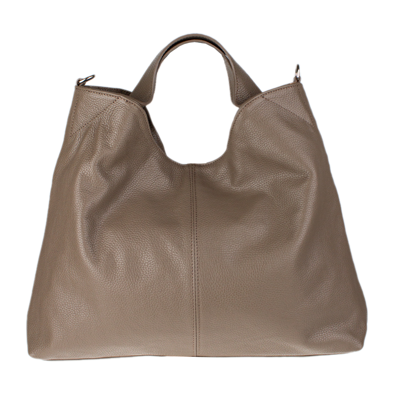 Elegantní kožená hobo kabelka v barvě taupeHledáte dokonalou rovnováhu mezi stylem a praktičností? Tato prostorná dámská kabelka typu „hobo“ je vyrobena z prvotřídní pravé kůže s jemnou zrnitou texturou, která jí dodává luxusní vzhled a mimořádnou odolnost. Její nadčasový design v elegantním odstínu taupe (šedo-hnědá) se snadno kombinuje s pracovním kostýmem i volnočasovým outfitem.