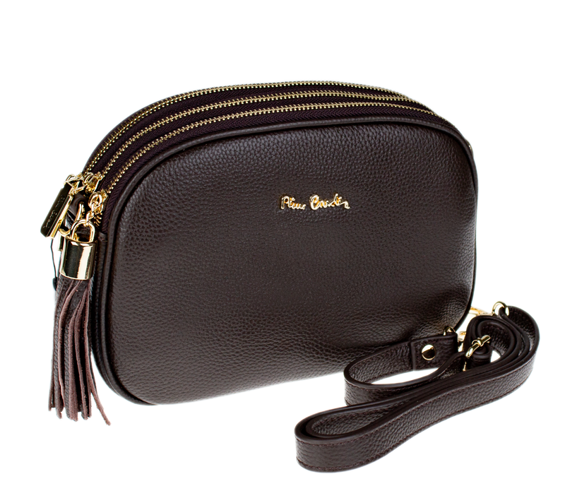 Praktická kabelka vyrobena z hovězí kůže v cafe barvě. Je vhodná na nošení přes rameno nebo crossbody. Součástí balení je přídavný nastavitelný pásek o délce 130 cm. Uzavírá se pomocí  zipu. Kabelka má 3 samostatně uzavíratelné přihrádky.