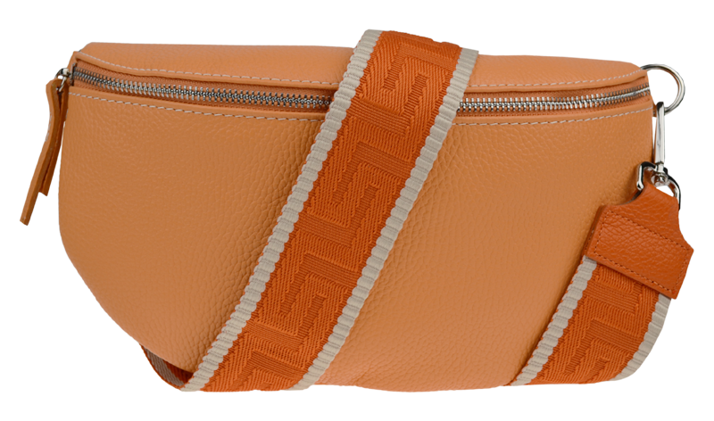 Elegantní, ale zároveň velmi praktická oranžová ledvinka malých rozměrů vyrobena z pravé kůže.