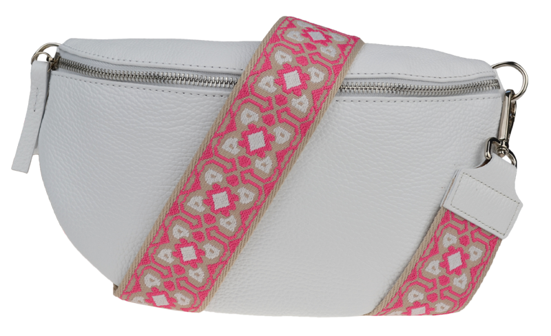 Elegantní, ale zároveň velmi praktická bílá ledvinka malých rozměrů vyrobena z pravé kůže.