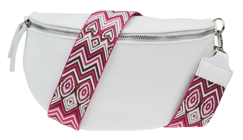 Elegantní, ale zároveň velmi praktická bílá ledvinka malých rozměrů vyrobena z pravé kůže.