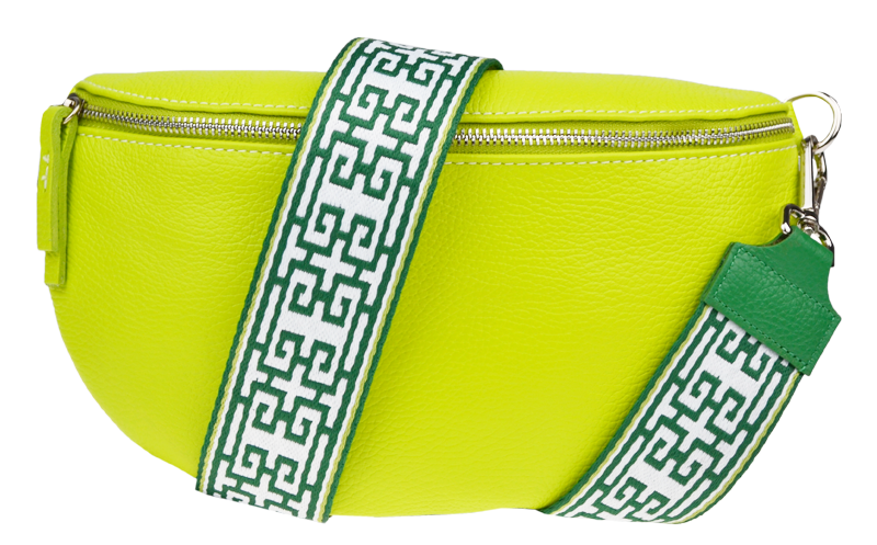 Elegantní, ale zároveň velmi praktická ledvinka v barvě limetky malých rozměrů vyrobena z pravé kůže.